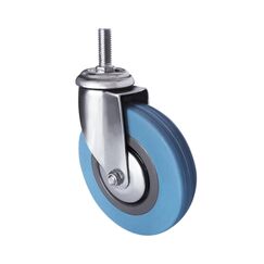 Применяется для работы в помещениях. Эта серия колес часто применяется при изготовлении медицинского передвижного оборудования, различных деталей мебели, складских тележек. Серая резина обладает очень мягким ходом и является достаточно маневренной. Данная опора оснащается двухрядным шарикоподшипником и имеет втулку скольжения оси. Шинка колесной опоры серая резина изготавливается из полипропилена серого цвета, чьей особенностью является шумопоглощение, малая вибрация и отсутствие следов на поверхности. Заводской температурный режим для данной серии варьируется между -20С° и +50С°. В качестве крепления использован болт, который выполнен из специальной стали с оцинковкой. Колеса малой грузоподъемности, используются на медицинской мебели в основной и там где изделие катается по кафелю или плитке, чтобы не оставлять следов. Поворотная опора 50 мм на болте M10-12, до 25 кг, нейлоновое колесо не оставляет следов и обеспечивает плавное передвижение по любым полам.