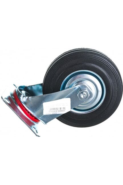 Применяется для транспортировки грузов средней степени тяжести. Колесо поворотной опоры оснащено роликовым подшипником. Данная серия колесных опор отлично адаптирована к эксплуатированию в помещениях и на грубой уличной поверхности. Обод поворотного колеса изготовлен из высокопрочной стали и оцинкован. Сама шина колеса выполнена из черной резины высокого качества, которая справляется с различными воздействиями внешней среды и поглощает вибрации и шум. Рекомендуемая скорость транспортировки груза на тележке с данным видом колес не более 4 км/ч. Заводской температурный режим для данной серии варьируется между -25С° и +50С°. В качестве крепления использована площадка. Используются для складских тележек, платформенных тележек, мусорных баков небольшой емкости, для строительных лесов, стеллажей, железной мебели.