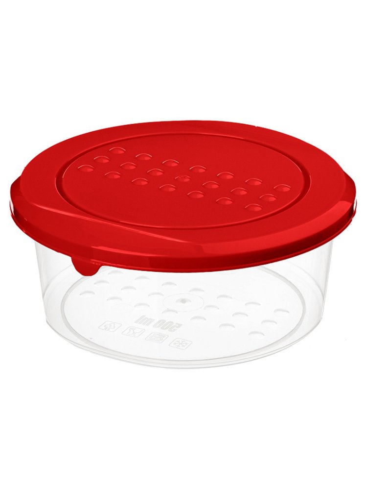 Удобный круглый пластиковый контейнер 0,5 л с плотно закрывающейся крышкой идеален для хранения строительных смесей, металлического крепежа, мелких деталей и расходных материалов. Яркий красный корпус облегчает идентификацию содержимого, а прочный материал обеспечивает долговечность даже при интенсивной эксплуатации на стройке или в мастерской.
