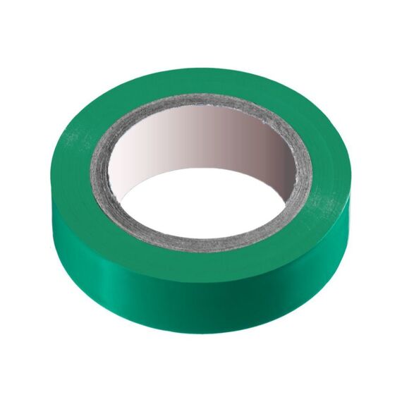 ПВХ-изолента 15мм×20м, зелёная, устойчива к влаге и химии, для изоляции, фиксации и маркировки электропроводки и кабелей.