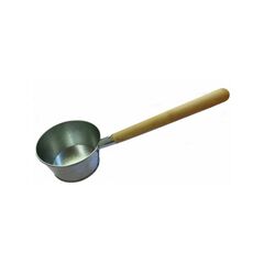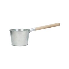 Оцинкованный ковш 1,5 л с эргономичной деревянной ручкой для работы с растворами и жидкостями, прочен, удобен и устойчив к коррозии.