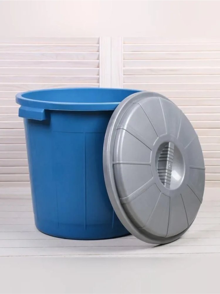 Прочный пластиковый бак 50 л для воды и жидкостей, с герметичной крышкой и ручками, идеально подходит для стройки, дачи и хозяйства.