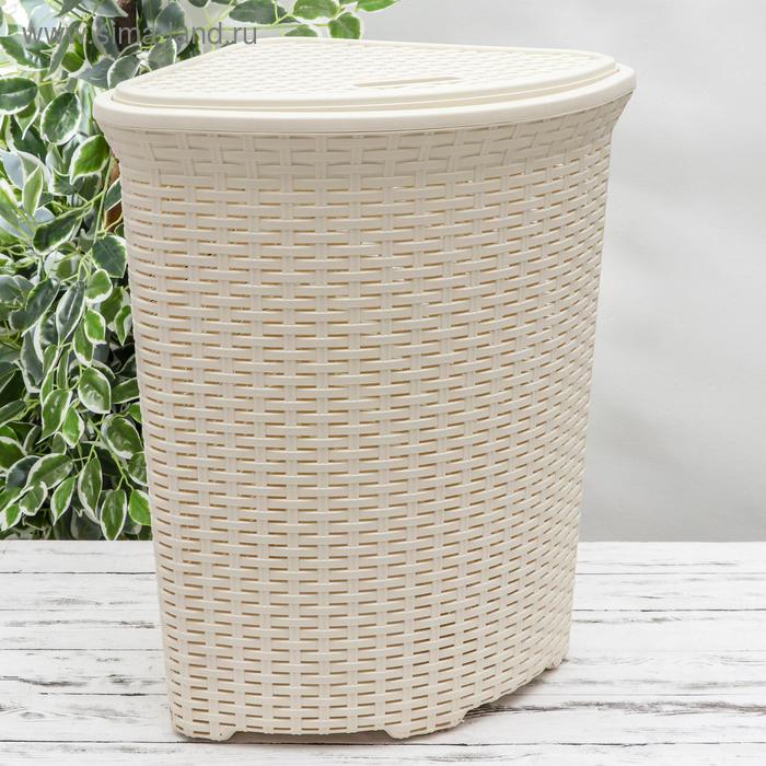 Корзина д/белья 60л "Ротанг" угловая с крышкой, слоновая кость 5301724