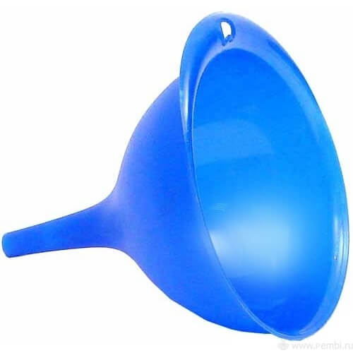 Синяя пластиковая воронка d160/20 мм для аккуратного переливания жидкостей и пересыпания сыпучих продуктов дома и в гараже.
