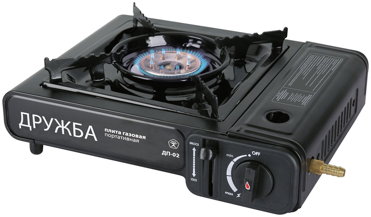 Плита газовая портативная ДРУЖБА (ДП-02) с переходником