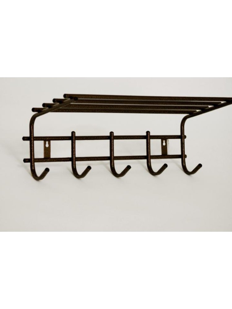 Конструкция из прочного металла с антикоррозийным покрытием оснащена пятью крючками и полкой для хранения головных уборов, аксессуаров и прочих предметов. Компактные габариты и настенное крепление позволяют экономить пространство в прихожих, гардеробных, бытовых и хозяйственных помещениях. Легко монтируется на любую ровную поверхность, устойчива к механическим воздействиям и влаге.