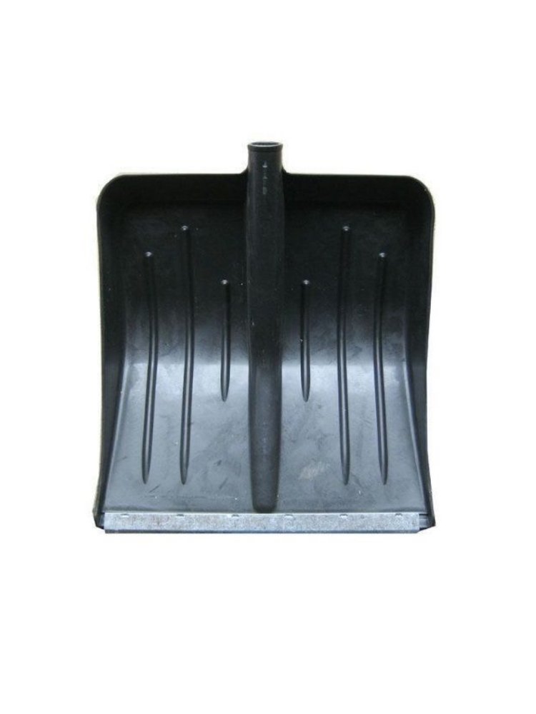Легкая и прочная пластиковая лопата 430×440 мм с обрезиненной кромкой — для уборки снега и строительных работ, устойчива к износу.