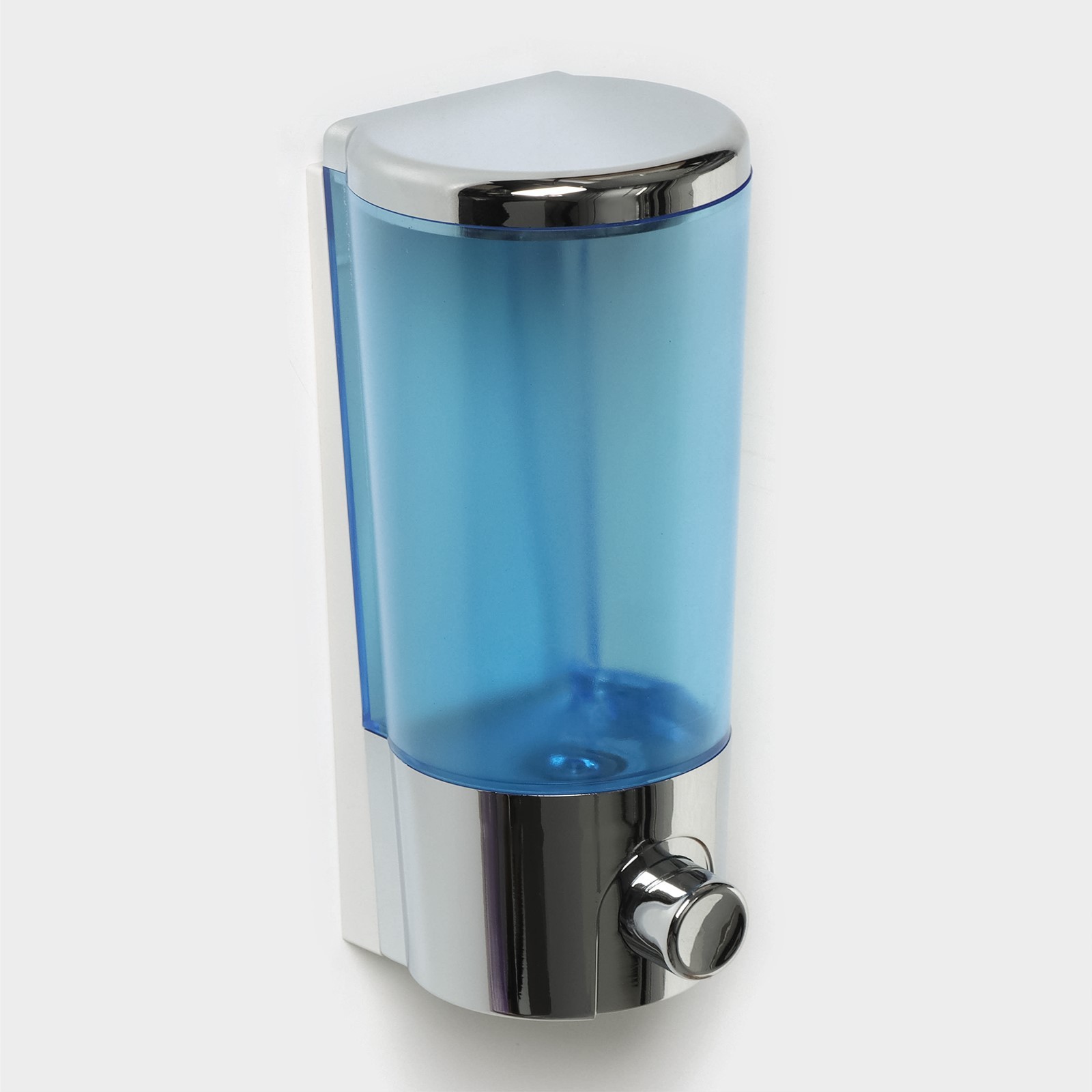Настенный дозатор объёмом 500 мл в хромированном корпусе, компактный, прост в установке и обслуживании, подходит для дома и общественных помещений.