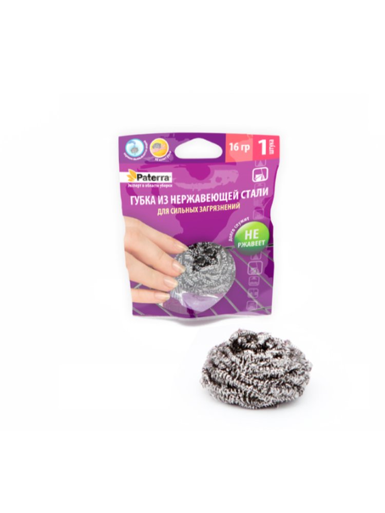 Губка для посуды металлическая PATERRA, из нержавеющей стали, спираль 16г