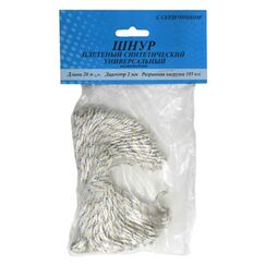Прочный полипропиленовый шнур 2 мм, 20 м, с сердечником, устойчив к влаге и ультрафиолету, идеален для крепления и подвязки на стройке и в быту.