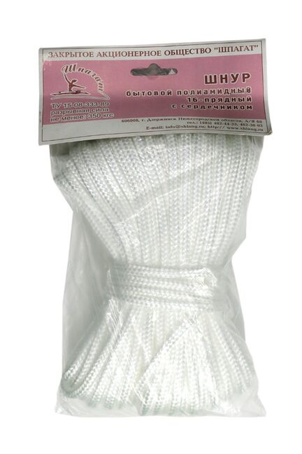 Универсальный полиамидный шнур 6мм, 20м: прочный, устойчив к влаге и износу, подходит для крепежа, монтажа и хозяйственных работ.