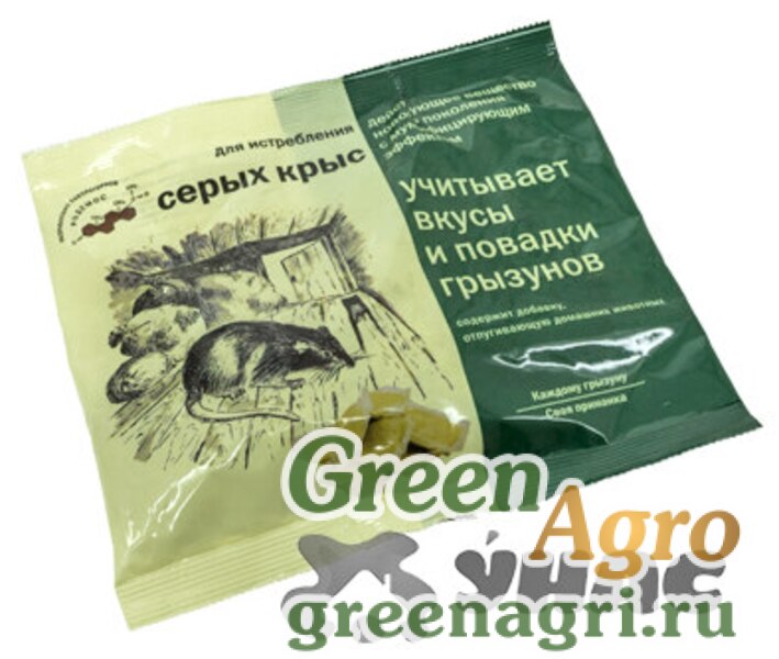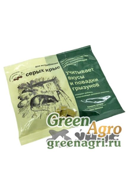 Приманка для быстрого и эффективного уничтожения крыс и мышей. Влагоустойчивая, простая в применении, безопасная при правильном использовании.