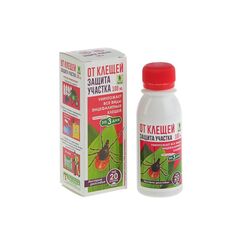 Эффективно защищает участок от клещей до 3 недель, легко наносится, экономичен, безопасен при правильном применении, объем — 100 мл.