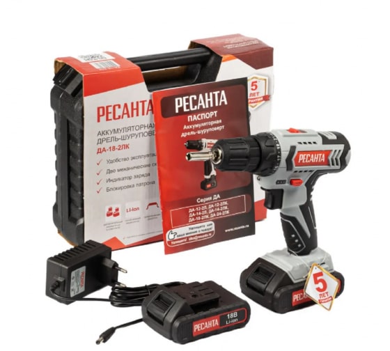Шуруповерт акк. РЕСАНТА ДА-18-2ЛК, 18В Li-Ion, 2*2,0 А*ч, кейс в Амурск