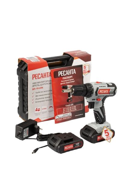 Шуруповерт акк. РЕСАНТА ДА-18-2ЛК, 18В Li-Ion, 2*2,0 А*ч, кейс