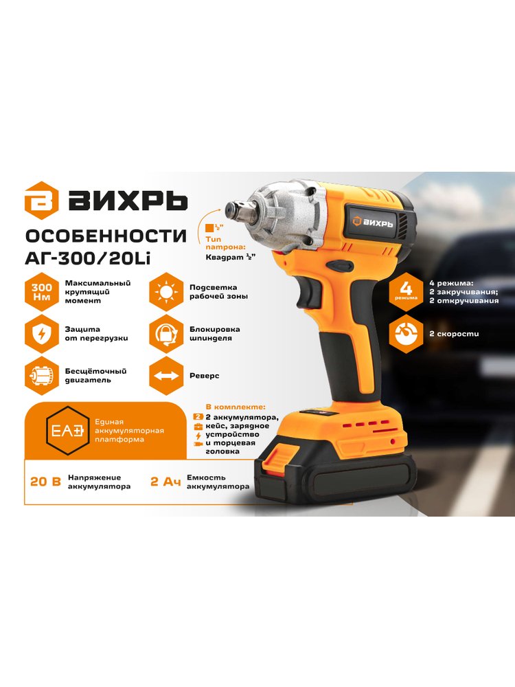 - Максимальный крутящий момент: 300 Нм — надежное закручивание и откручивание даже закисших гаек