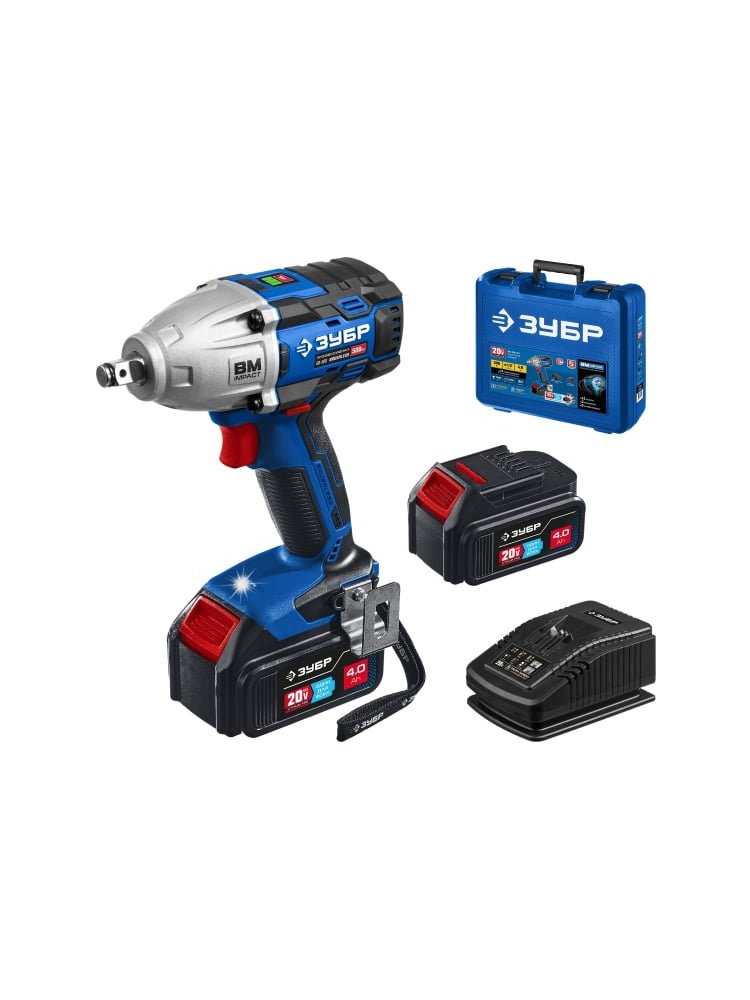 Гайковерт акк. ЗУБР Т7, 20В, 500 Н.м, 2 АКБ*4 Ач, бесщеточный, ПРОФЕССИОНАЛ, кейс