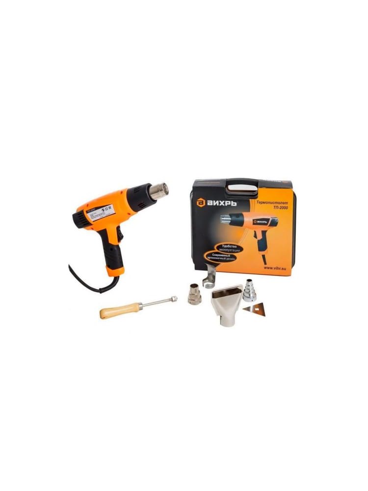 - В комплекте насадки для точечного нагрева, распределения воздуха, защиты рабочих поверхностей