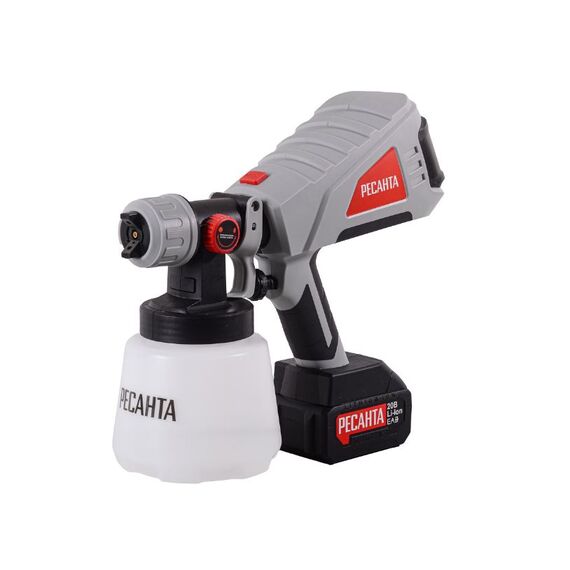 Аккумуляторный краскораспылитель 20В 4Ач для быстрой и равномерной покраски любых поверхностей, с бачком 800 мл.