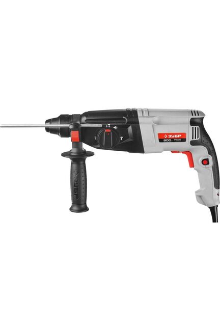 Перфоратор ЗУБР МАСТЕР имеет три режима работы: сверление, сверление с ударом и долбление. Также предусмотрен режим поворота долота - на определённый градус после каждого удара. Переключение между ними осуществляется с помощью тумблера сбоку на корпусе. Для удобства продолжительной по времени работы имеется фиксатор клавиши "Пуск", что исключает необходимость постоянно держать на ней палец. Перфоратор 800 Вт, 2,7 Дж, 3 режима, SDS-Plus, анти вибрация, кейс — для профессионального сверления и штробления, удобство и надежность.