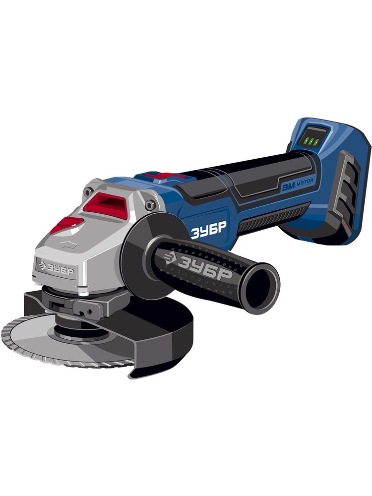 Шлифмашина угловая акк. ЗУБР 20В, бесщеточная, без АКБ и ЗУ, коробка