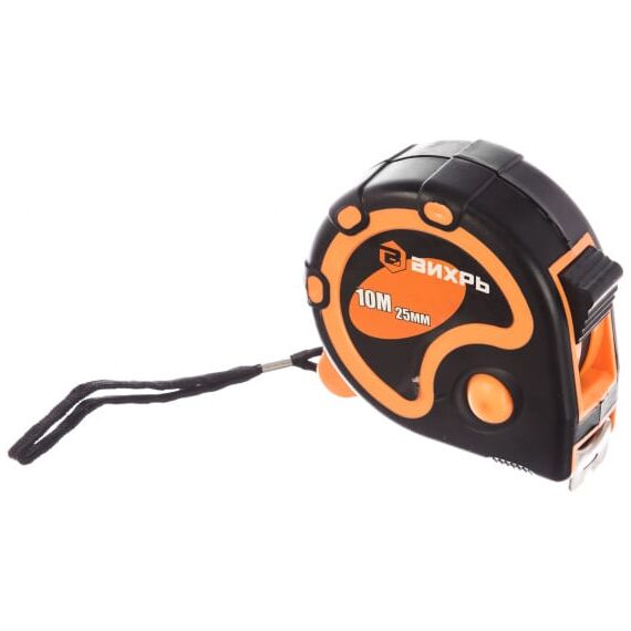 Рулетка Вихрь предназначена для эксплуатации в различных условиях. Конструкция обеспечивает точность измерений при сохранении жесткости ленты. Для транспортировки имеется петля на запястье. Три уровня фиксации делают измерения проще. Рулетка 10м с прочной лентой, автоматической фиксацией и надежным корпусом для точных замеров в строительстве и ремонте.