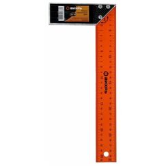 Состоит из двух плеч: основания (колодки) и линейки, скрепленных под углом 90°. Двухсторонняя разметка в см. Материал изготовления: Сталь Назначение: используется для помощи в нанесении прямых линий, расположенных параллельно и перпендикулярно друг к другу. Металлический угольник 500 мм для точной разметки и измерения, защищён от коррозии, оптимален для столярных и строительных работ.