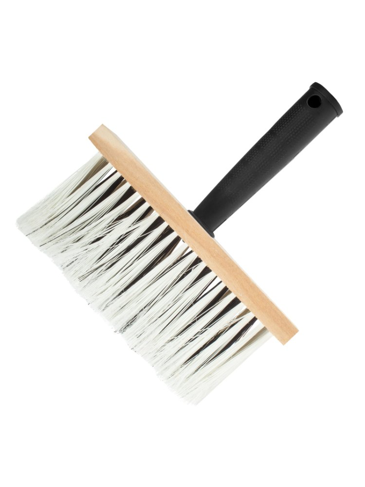 Искусственное расщепленное волокно, деревянный корпус шлифованный, пластиковая рукоятка. Шетина вбита в основание пучками. Назначение: Макловица используется для работ с водно-дисперсионными, масляными красками и лаками, а также для размывания ЛКМ, нанесения клеящих составов, грунтовки и побелки на большие поверхности. Макловица 170х70 мм с синтетической щетиной и пластиковой ручкой: быстрое и равномерное нанесение краски и клея, долговечность, лёгкий уход.