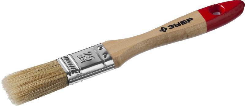 Плоская кисть ЗУБР Универсал, светлая натуральная щетина имеет следующие преимущества: натуральная щетина обеспечит оптимальное нанесение различных видов ЛКМ, щетина кисти надежно закреплена стальным бандажом, а наличие удобной деревянной рукоятки обеспечит комфортную работу. Натуральная щетина, прочная деревянная ручка, ширина 20 мм — для аккуратных малярных и отделочных работ с любыми составами.