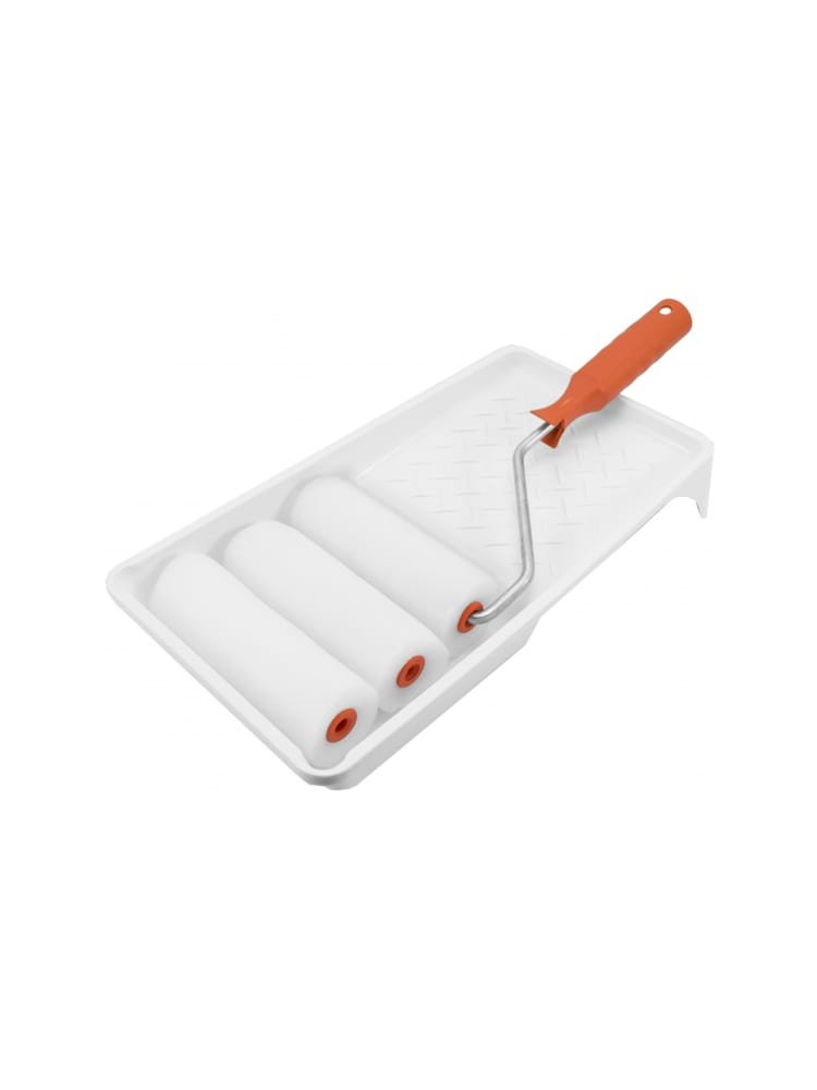 Оптимальный комплекс для работы с откосами: ванночка, мини-валик из поролона 110 мм и две запаски обеспечивают аккуратное и равномерное нанесение лакокрасочных материалов. Набор идеально подходит для работ на ограниченных площадях, где требуется максимальная точность — в том числе для оформления откосов, обработки углов, оконных и дверных проёмов.