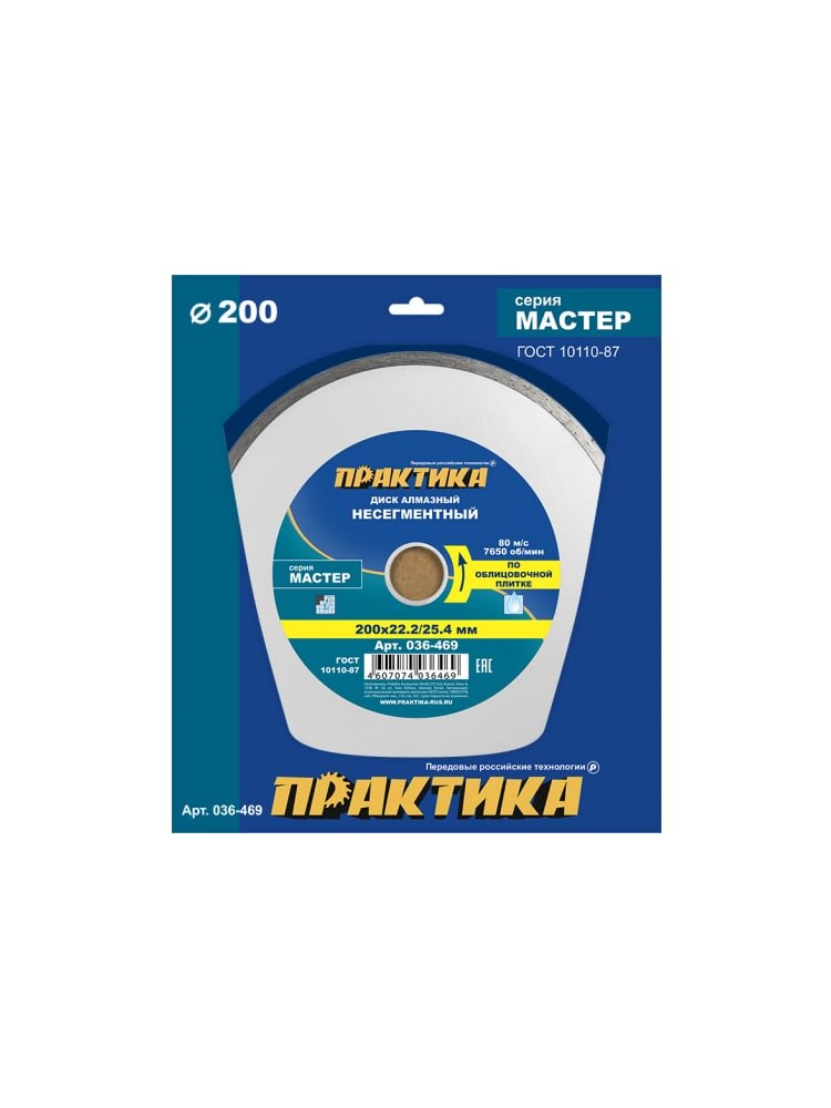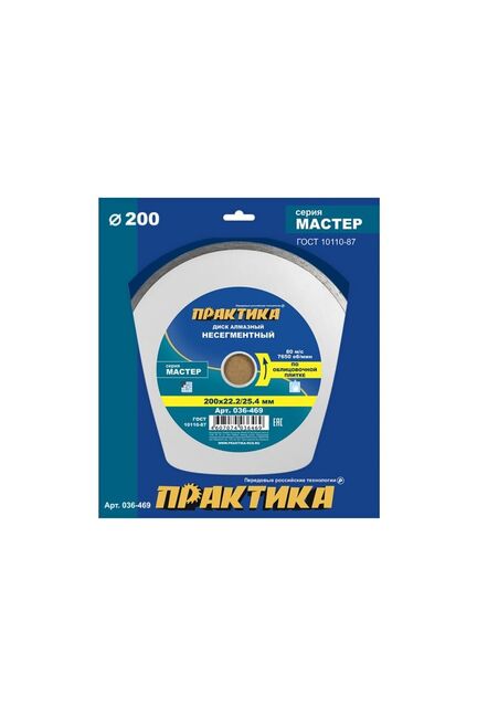 Диск алмазный несегментный ПРАКТИКА "Мастер" 200*25.4/22 мм в Амурск