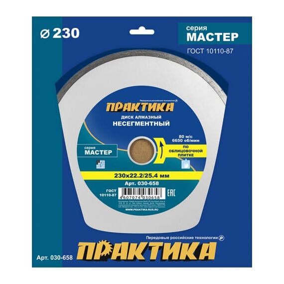 Диск алмазный несегментный ПРАКТИКА "Мастер" 230*25.4/22 мм в Амурск