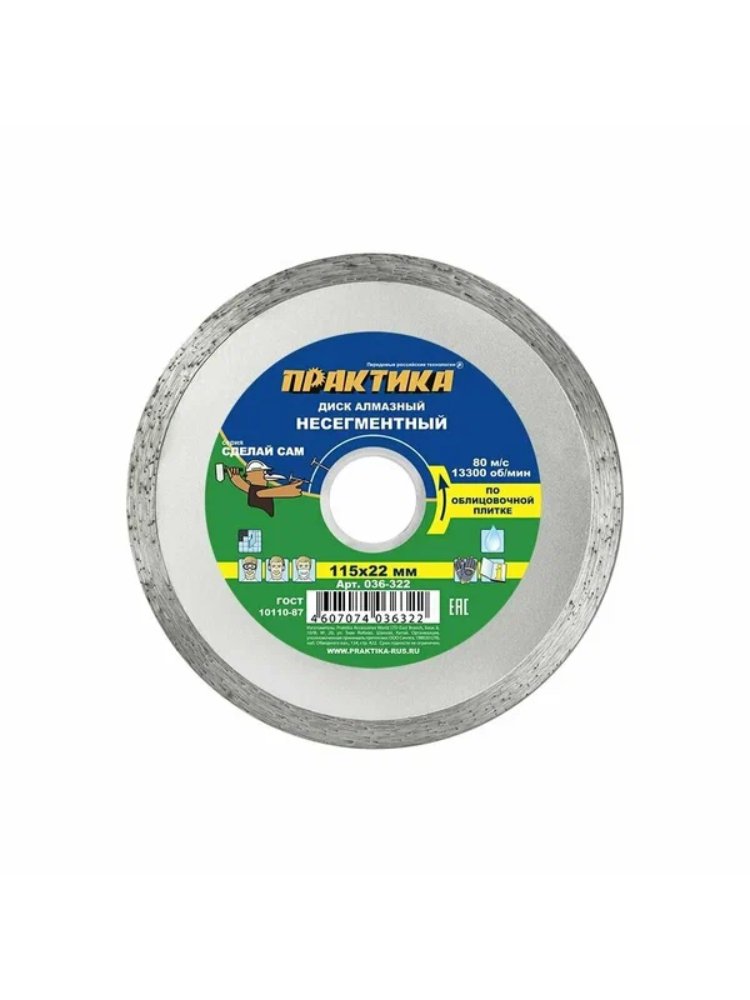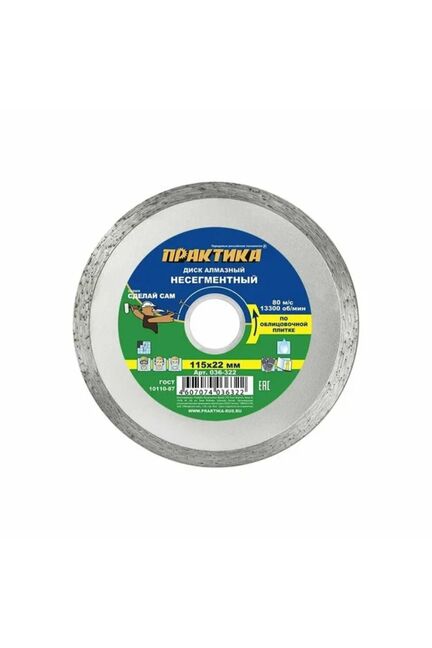 Диск алмазный несегментный ПРАКТИКА "Сделай Сам" 115х22 мм для керамической плитки в Амурск