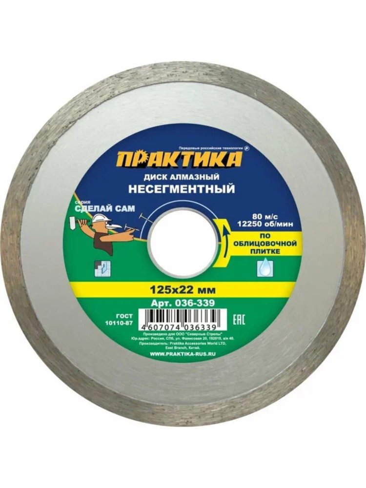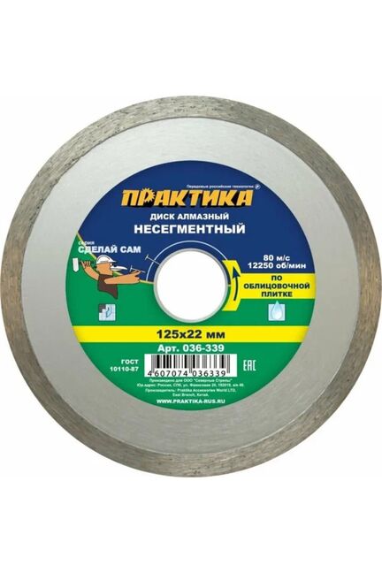 Диск алмазный несегментный ПРАКТИКА "Сделай Сам" 125х22 мм для керамической плитки в Амурск