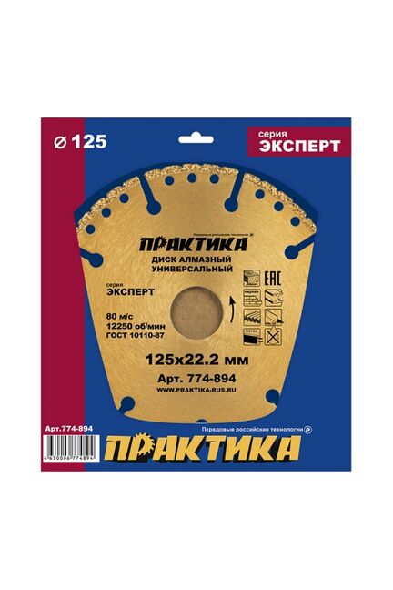 Диск алмазный сегментный ПРАКТИКА "Эксперт-Универсал" 125х22 мм, сегмент 10 мм