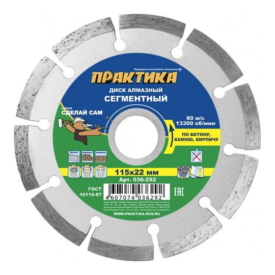 Диск алмазный сегментный ПРАКТИКА "Сделай сам" 115*22 мм