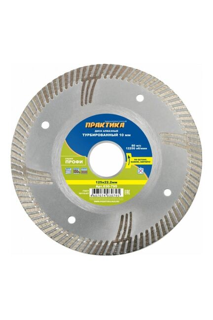 Диск алмазный турбированный ПРАКТИКА "Профи" 125*22 мм, сегмент 10 мм в Амурск