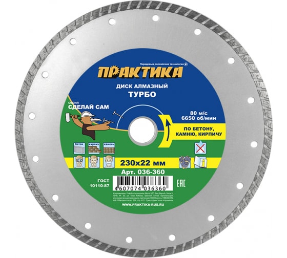 Диск алмазный турбированный ПРАКТИКА "Сделай Сам" 230*22 мм в Амурск