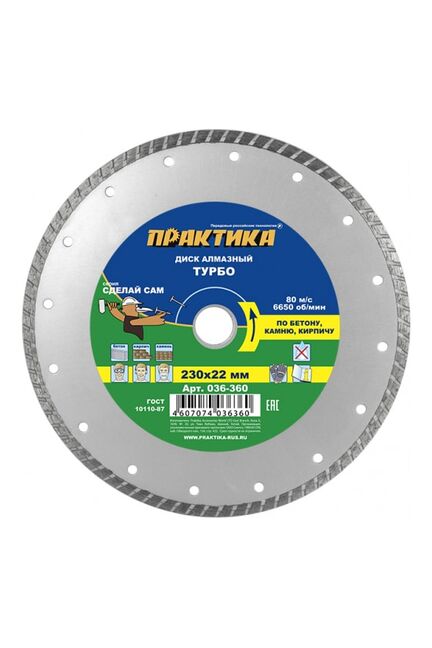 Диск алмазный турбированный ПРАКТИКА "Сделай Сам" 230*22 мм