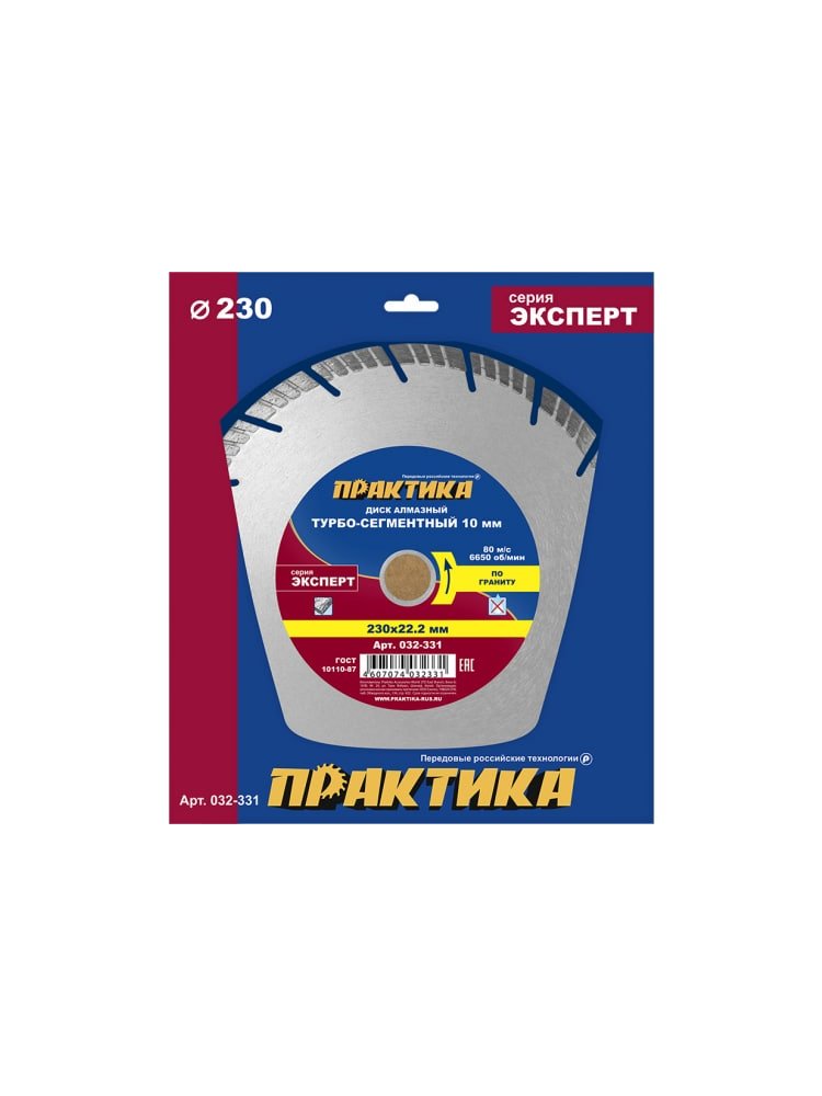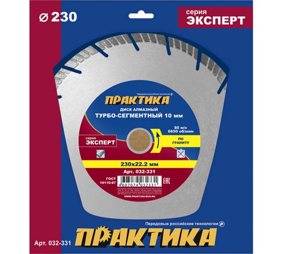 Диск алмазный турбосегментный ПРАКТИКА "Эксперт-гранит" 230*22 мм, сегмент 10 мм в Амурск