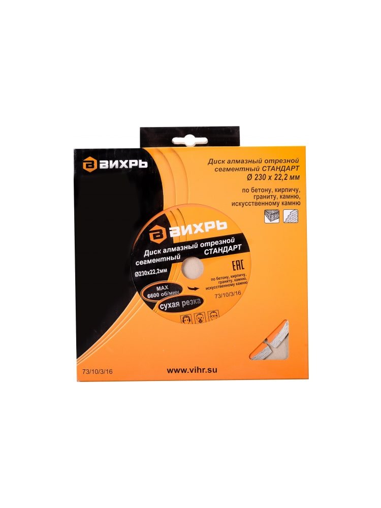 Диск алмазный отрезной сегментный ВИХРЬ 230х22,2 мм,сухая резка в Амурск