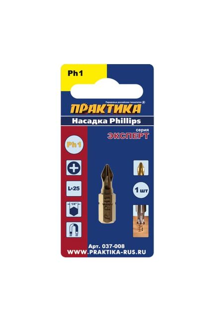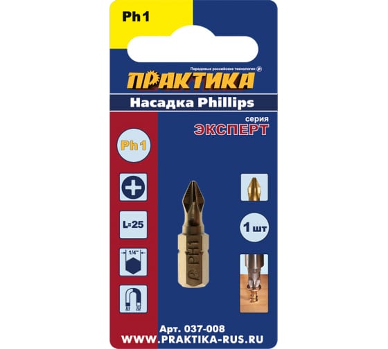Бита отверточная ПРАКТИКА "Эксперт" PH-1*25 мм, Tin в Амурск