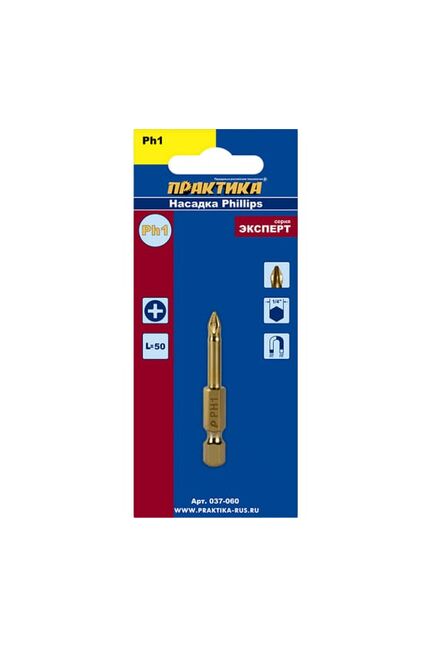 Бита отверточная ПРАКТИКА "Эксперт" PH-1*50 мм, Tin в Амурск