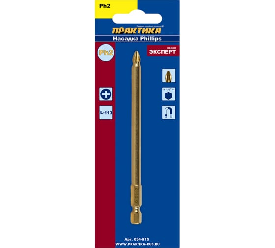 Удлинённая PH2-бита 110 мм, сталь S2 с покрытием TiN для длительного ресурса и точной работы в труднодоступных местах.