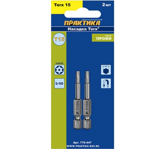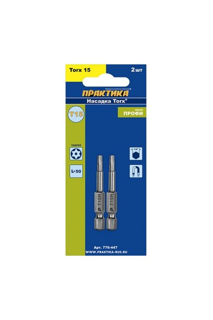 Бита отверточная ПРАКТИКА "Профи" Torx Tamper-15*50 мм, 2 шт