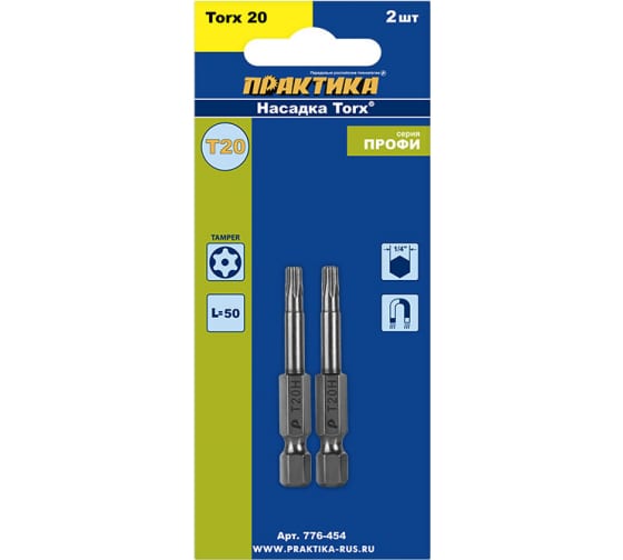 Бита отверточная ПРАКТИКА "Профи" Torx Tamper-20*50 мм, 2 шт