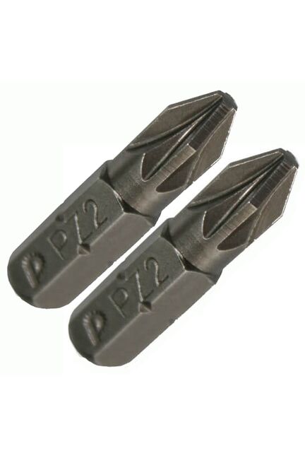 Насадки отверточные Pozidriv. Магнитные. Серия "Профи". Шурупы с крестообразным шлицем Pozidriv® являются развитием шлица Phillips. Благодаря четырем дополнительным малым опорным поверхностям поддерживается равномерное распределение усилий при заворачивании, что позволяет поддерживать более высокие крутящие моменты. Насадки Pozidriv® лучше держатся в шлице шурупа, поэтому ими удобно работать как с очень маленькими саморезами, например при сборке мебели, так и с длинными и толстыми шурупами при установке дверных и оконных коробок, сборке массивных конструкций из дерева. Биты PZ2 25 мм, 2 шт — высокая износостойкость, идеальны для шуруповертов, плотно сидят в крепеже, исключая срывы и повышая скорость монтажа.