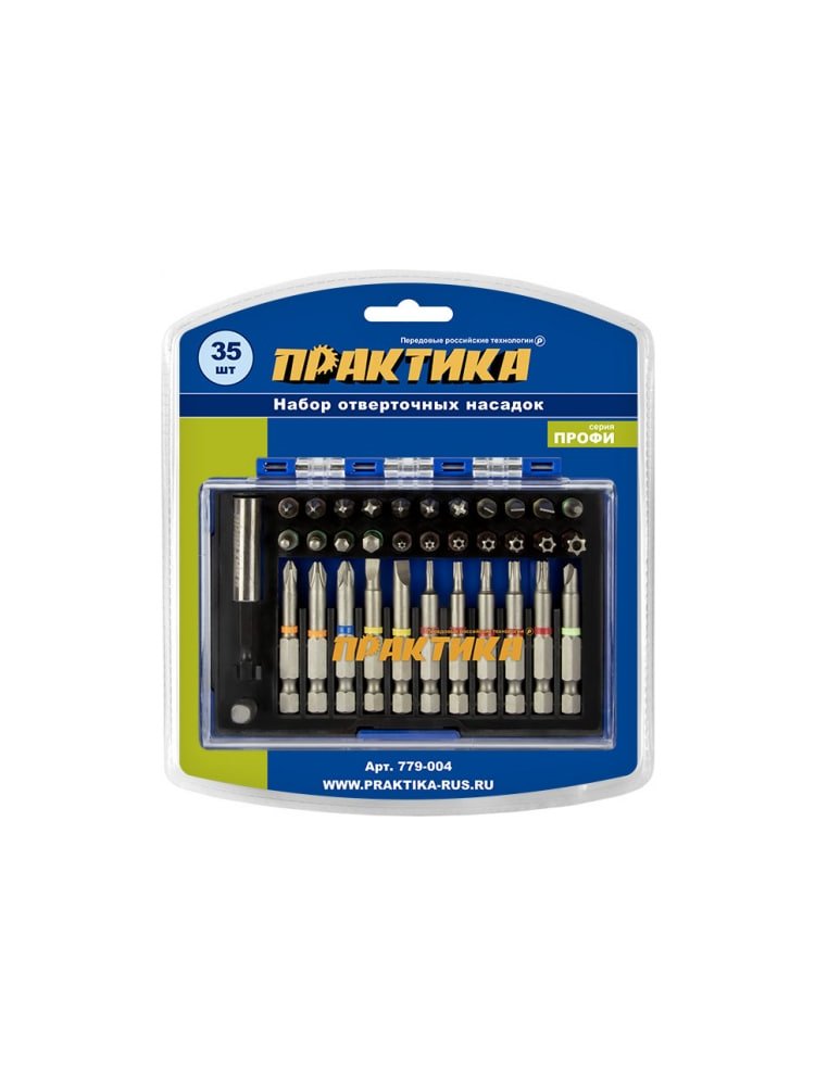 Набор бит ПРАКТИКА 35шт, 25 и 50 мм, PH, PZ, SL, Hex, Torx, Tri-Wing, держатель 60 мм в Амурск