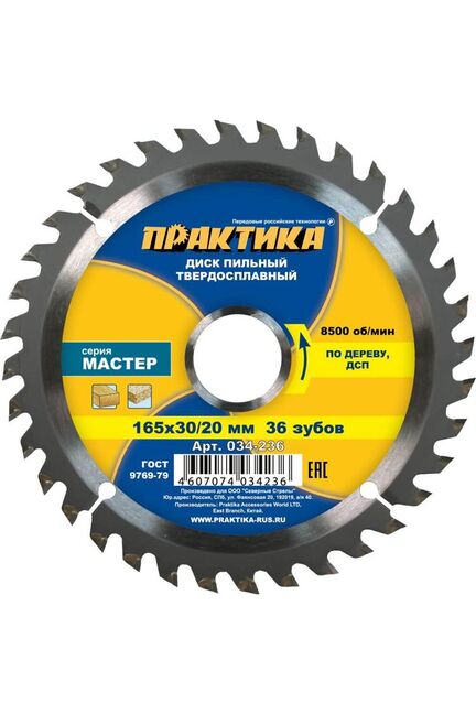 Диск пильный по дереву, ДСП ПРАКТИКА 165 х 30\20мм, 36T в Амурск