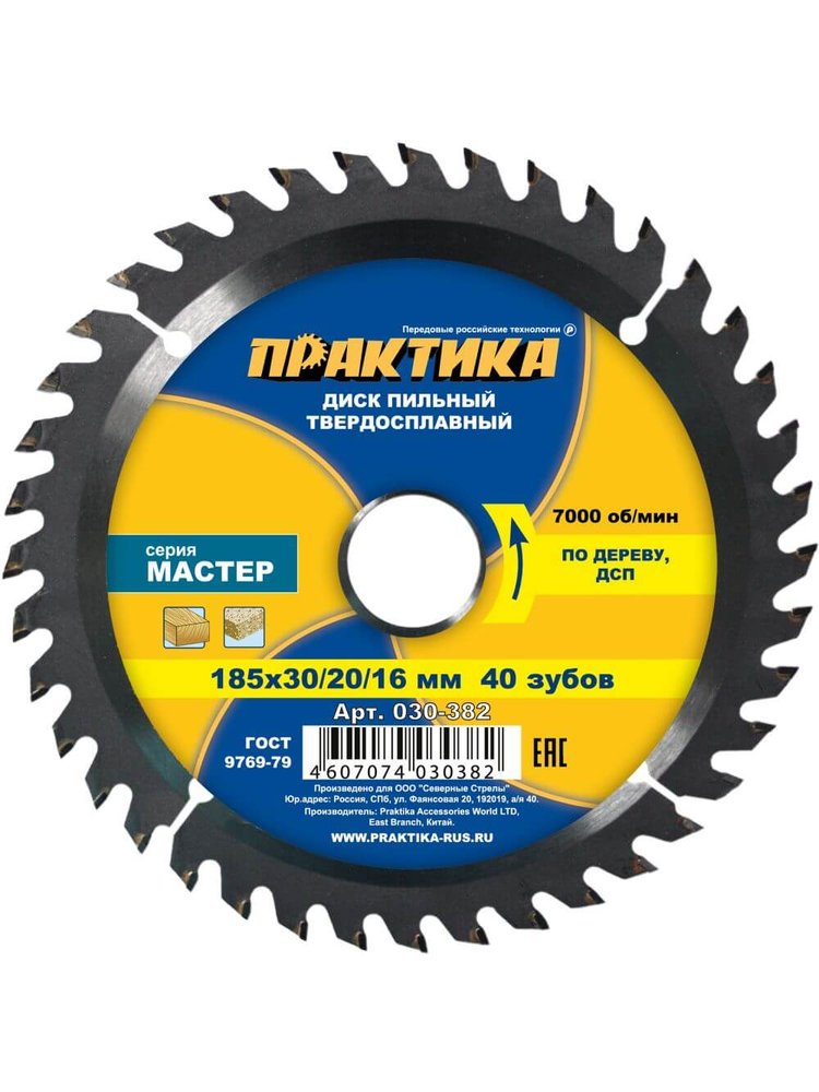 Диск пильный по дереву, ДСП ПРАКТИКА 185 * 30\20\16мм, 40T в Амурск